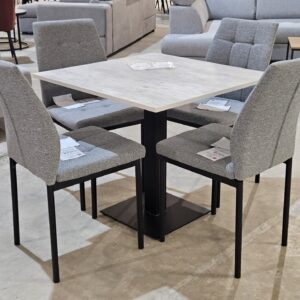 Blagovaonski stolovi su poseban komad namještaja u svakom domu, pa čak i kad na njima nema hrane. Predstavljaju idealno mjesto za druženje s obitelji i prijateljima. Ovaj stol “STOL PO MJERI” oduševljava na prvi pogled. Jednostavne ravne linije, moderan dizajn i atraktivan izgled odlike su koje će Vas sigurno privući. Izrađen je od kombinacije kvalitetnog metala i iverala.